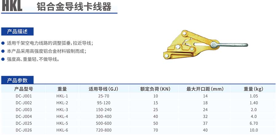 HKL鋁合金導線卡線器