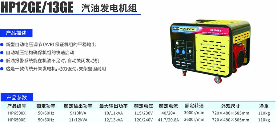 HP12GE/13GE汽油發電機組