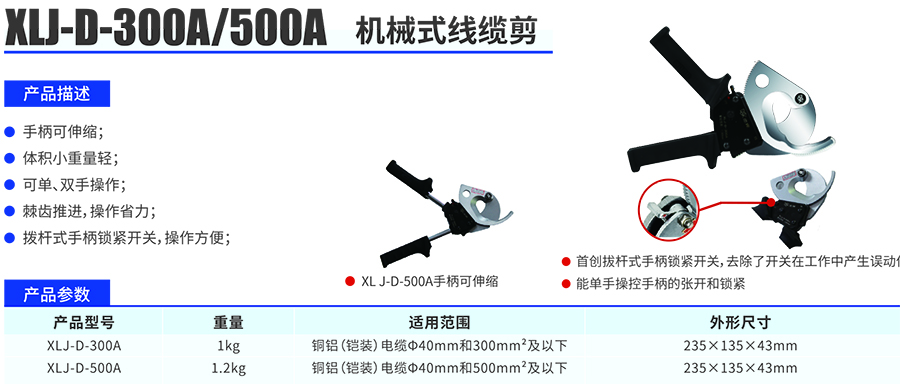 XLJ-D-300A/500A機(jī)械式線纜剪